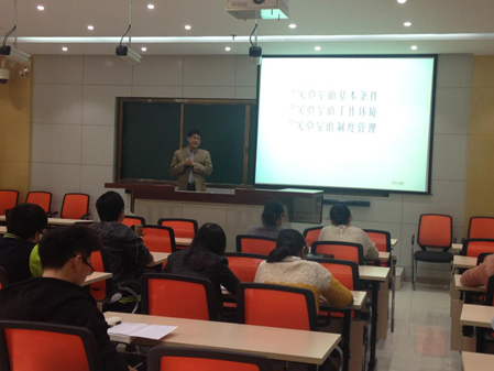 2015年4月22日下午3時,合肥市環境監測站的張敏主任做了一場題為“理化檢驗實驗室要求及管理”的學術報告。張主任主要從實驗室的布局設置、水電氣供應、一般和劇毒藥品的日常監管、實驗室“三廢”的合理處理、實驗室管理制度及管理人員培訓等幾個方面為大家一一作了詳盡的介紹。環境工程專業研究生學習期間以及今后從事科學研究都離不開實驗室,了解本專業實驗室的特點及其日常管理制度非常必要。張主任的講座對于研究生的專業學習意義重大。