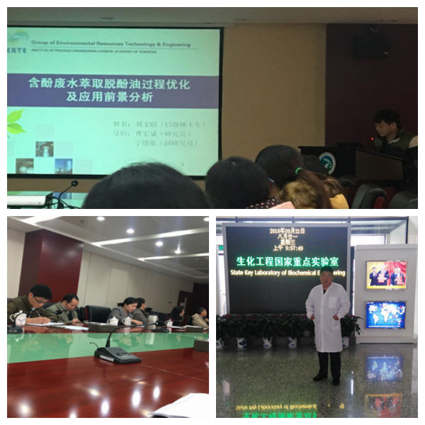 而竇衛軍同學說,他到過程所的第一天,萬印華研究員團隊的沈飛副研究員邀請他在所里散步,期間向他介紹過程所的歷史、所里的自然環境以及關心他來到北京的生活情況。接下來的日子,竇衛軍在導師們的指導下便馬不停蹄的投入到學習之中,一邊讀文獻,一邊隔三差五的找老師討論,整個課題組里充滿濃厚的學習氛圍,定期舉行Journal Club和組會討論等學習研討活動。在Journal Club時,老師和同學們根據最近看的文獻,將新穎的觀點和啟發與大家一起討論,共同學習,共同進步。在組會中,每一位同學都要準備20-30分鐘的發言,將一個月來的實驗數據向老師匯報,老師給予點評和建議,并安排下一個月的學習任務。平時,竇衛軍有什么問題隨時向老師們提問。他回憶,記得有一次,晚上八點左右,他對于文獻理解不透徹便向沈飛老師提問,沈老師耐心講解,并深入淺出地介紹文獻里的內容,時間悄然流逝,不知不覺已是夜里十一點鐘了。他感嘆,很幸運有機會借助中科院的資源不斷充實自己、開闊眼界。很感謝過程所萬印華老師、沈飛老師以及課題組里的其他老師和師兄師姐給予他的幫助,同時也忘不了校內導師劉俊生教授一直對他的關心和指導……