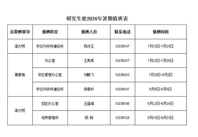 黨委研究生工作部、研究生處關(guān)于暑期值班工作安排的通知