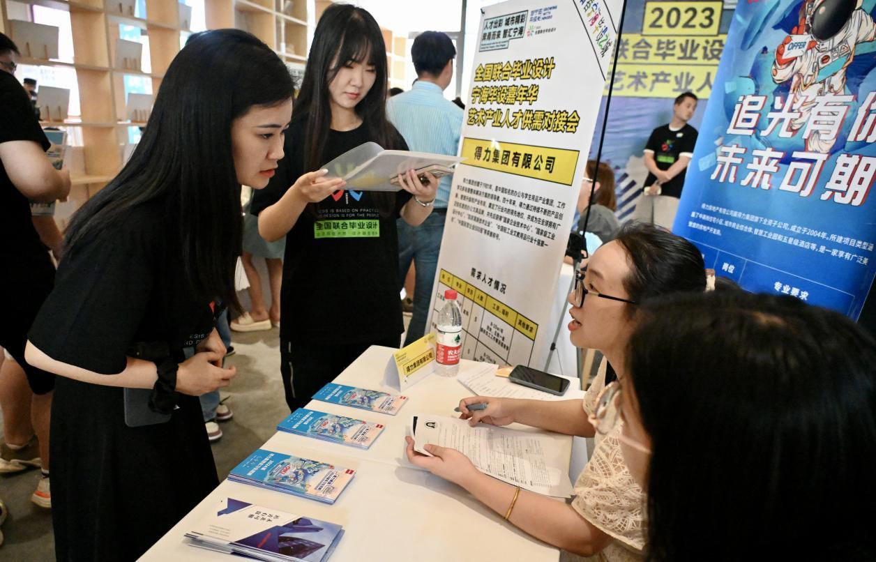 活動現場,還舉行了“來寧海 創未來”寧海人才政策推介暨重點企業人才招募,并專門組織舉辦一場藝術產業人才供需對接會,來自寧海當地20家企業,提供200多個優質崗位,吸引畢業生進場洽談。