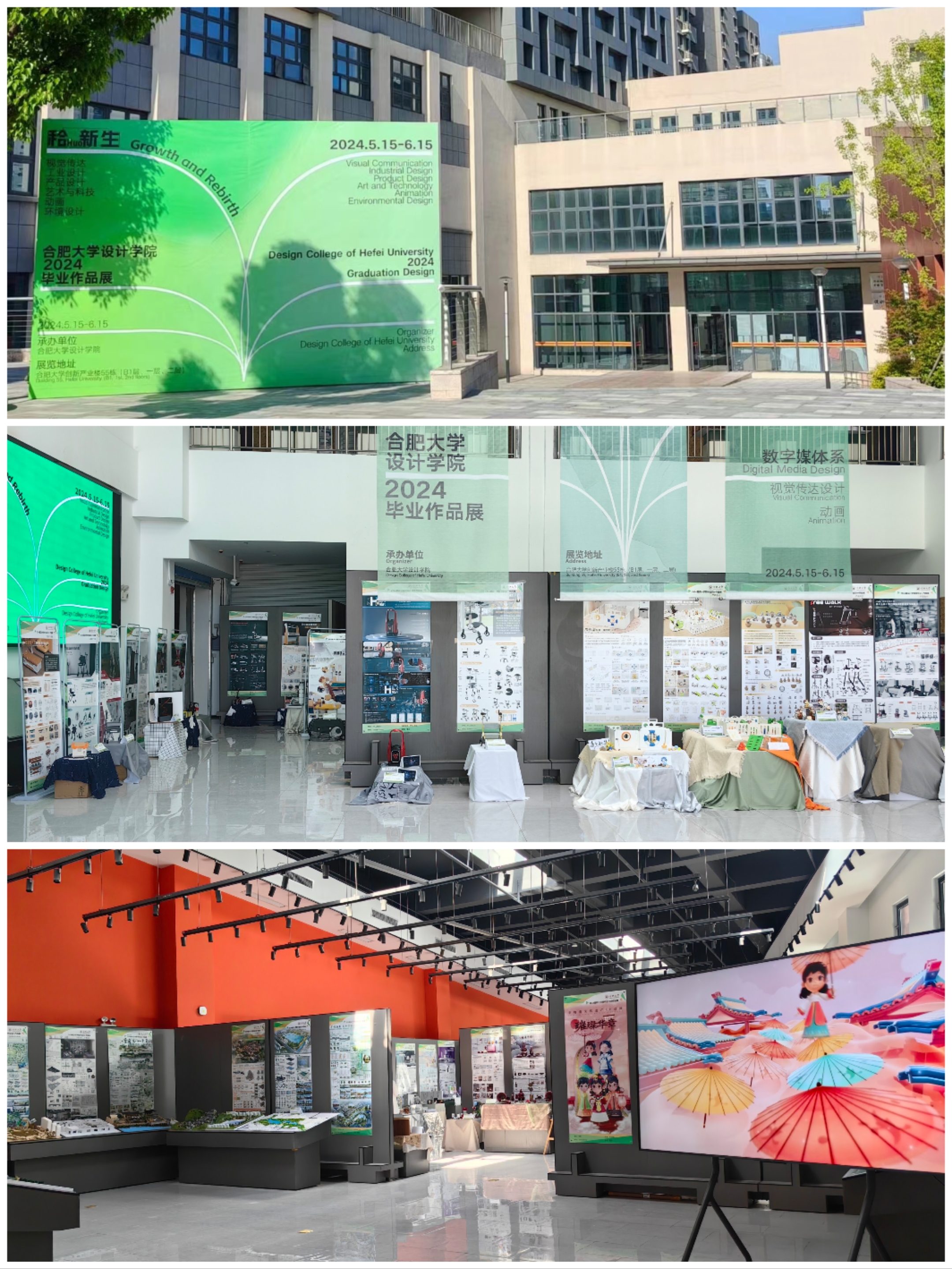 合肥大學設計學院2024屆畢業(yè)設計作品展于2024年5月15日起,在設計創(chuàng)意產業(yè)實驗實訓平臺(55#樓)展廳的B1層、一層、二層正式向全校師生開放展示,展期至6月15日結束。