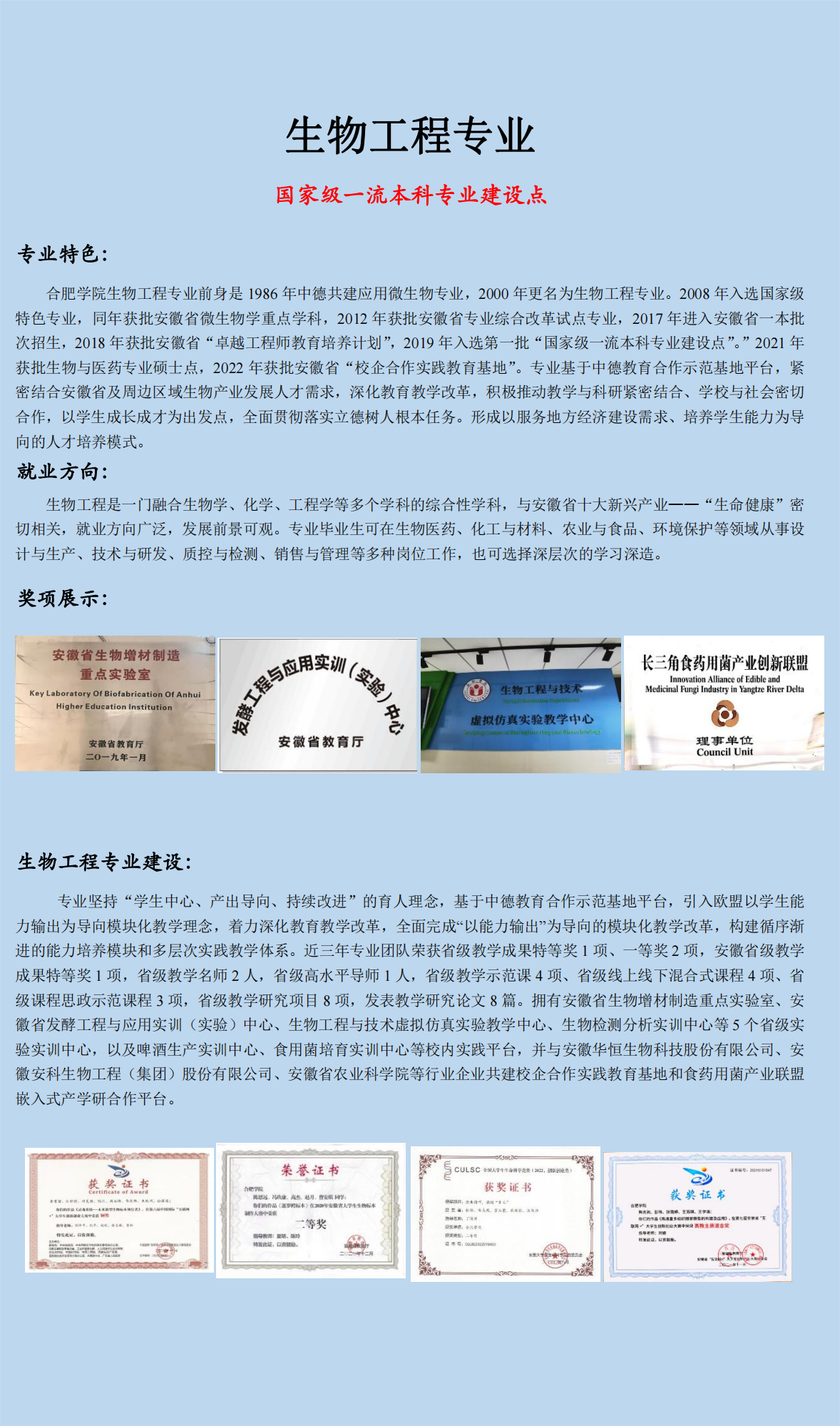 生物工程(本科) 咨詢電話:0551-62158453