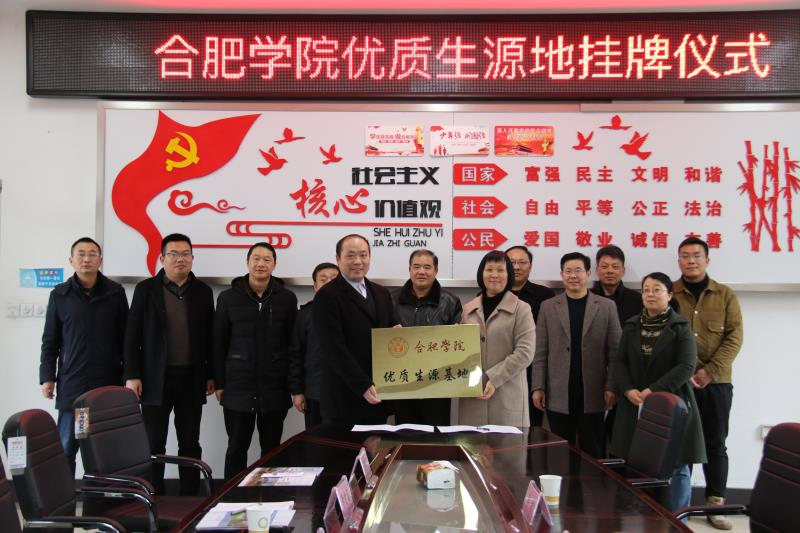 在簽約儀式上,侯繼紅院長一行認真考察了兩所中學的發(fā)展歷史和升學情況,并向來安縣委教體工委書記、縣教體局局長陳金城、來安中學校長劉玉華、來安三中校長曹傳山等十多人詳細介紹我校辦學歷史、學科特點、人才培養(yǎng)、學科專業(yè)設置、辦學特色、近年來省內招生及學生升學就業(yè)等情況,并就優(yōu)質生源基地建設和加強我校招生宣傳提出可行性建議舉措,希望以優(yōu)質生源基地簽約掛牌為契機,進一步加強兩校的聯(lián)系和合作,力爭為即將更名的合肥大學輸送更多的優(yōu)質生源;兩所中學的校領導也紛紛表達了對我校的認可和贊譽,并就我校走進學校實地考察建立生源基地這一舉措表示熱烈的贊許,同時對雙方簽訂優(yōu)質生源基地建設協(xié)議和被授牌表示欣喜,認為此舉將大力促進我校與中學之間的聯(lián)系,