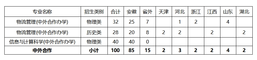 合肥大學2024年中外合作專業分省計劃一覽表(安徽省院校代碼為9015)