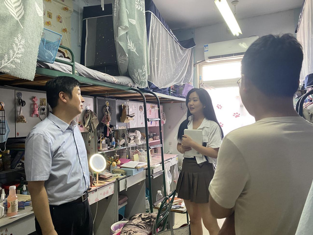 為進一步做好畢業班學生服務、教育、管理工作,語言文化與傳媒學院學生第一黨支部于6月17日開展了走訪看望畢業生班學生黨員活動,聯系語言文化與傳媒學院學生第一黨支部的校黨委班子成員、黨委學工部部長、學生處處長朱濤和語言文化與傳媒學院學生第一黨支部書記劉政來到畢業生宿舍看望學生黨員,并表達了學院的深切關懷與美好祝愿。