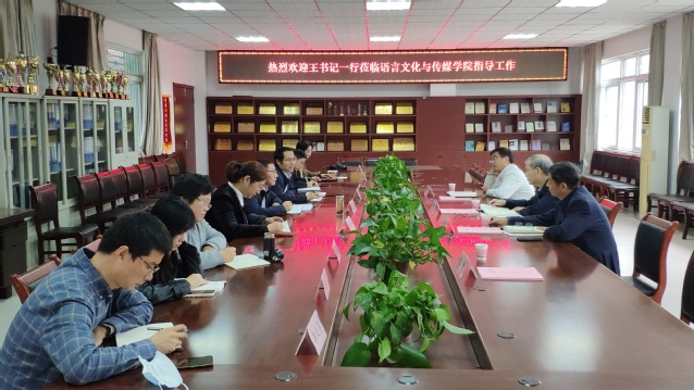王其東在認真聽取匯報后,對學院當前取得的成績表示了肯定,對今后發展提出了希望與要求。他表示,語言文化與傳媒學院近幾年發展很快,學院黨建、發展工作思路清晰、舉措有力、成效明顯,充分體現了領導班子的干事能力和進取精神。