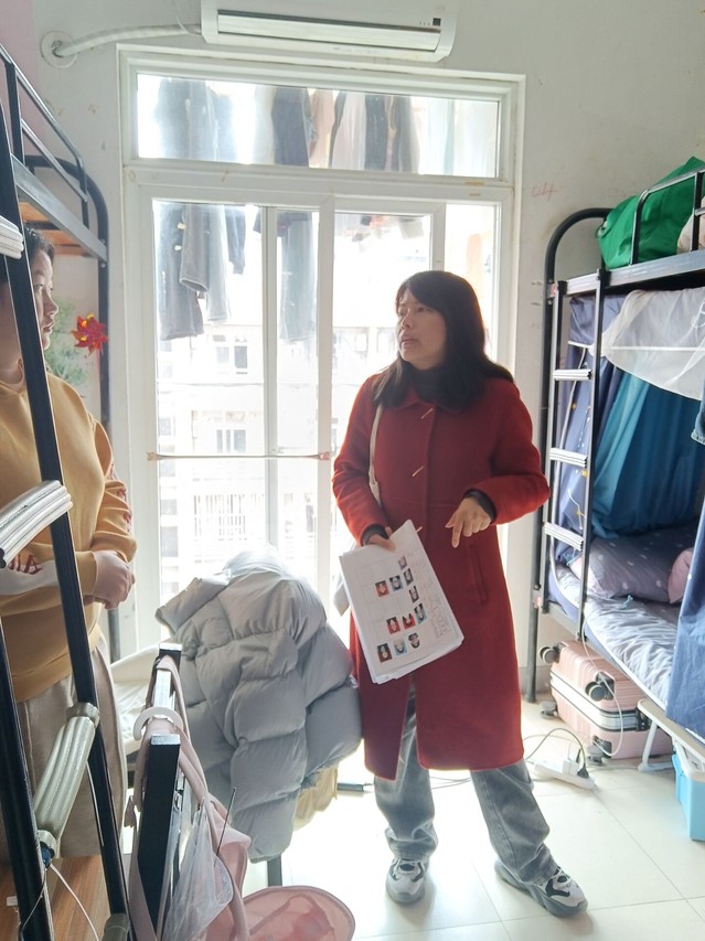 走訪過程中,老師們與同學(xué)們親切交談,詳細了解他們的學(xué)習(xí)和生活情況,叮囑同學(xué)們要提高防范電信詐騙意識,注意自己的人身和財物安全,注意預(yù)防各類春季流行病等。張愛萍書記特別強調(diào)同學(xué)們要遵守校規(guī)校紀(jì),不要使用大功率電器;寢室同學(xué)應(yīng)相互幫助,發(fā)現(xiàn)身邊的同學(xué)面臨就業(yè)困難、情感問題、焦慮情緒等,要及時給予關(guān)心,并尋求輔導(dǎo)員和老師的幫助。