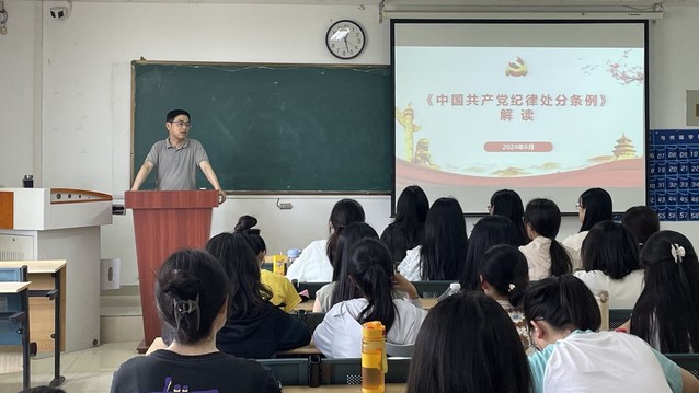 課上,殷明明圍繞《中國共產(chǎn)黨紀(jì)律處分條例》,從其歷史沿革、重要意義開始講起,并結(jié)合紀(jì)律處分的種類及重點內(nèi)容進行了全面、系統(tǒng)的解讀。他強調(diào),學(xué)生黨員要從自身做起,進一步增強組織紀(jì)律觀念。自覺做到遵守黨的紀(jì)律不動搖,執(zhí)行黨的紀(jì)律不走樣,時刻用黨的紀(jì)律嚴(yán)格要求和約束自己,規(guī)范自己的一言一行。